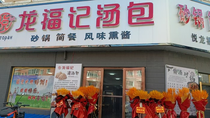 龙福记汤包早餐店品种齐全,汤包,大包子,小笼包,水饺,馄饨,蒸饺,砂锅,油饼,牛奶,豆浆,各种精美小菜!每一份早餐都是精心准备,好运满满,!好运连连——